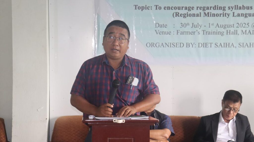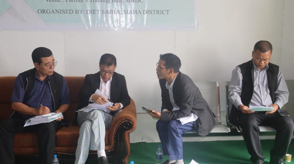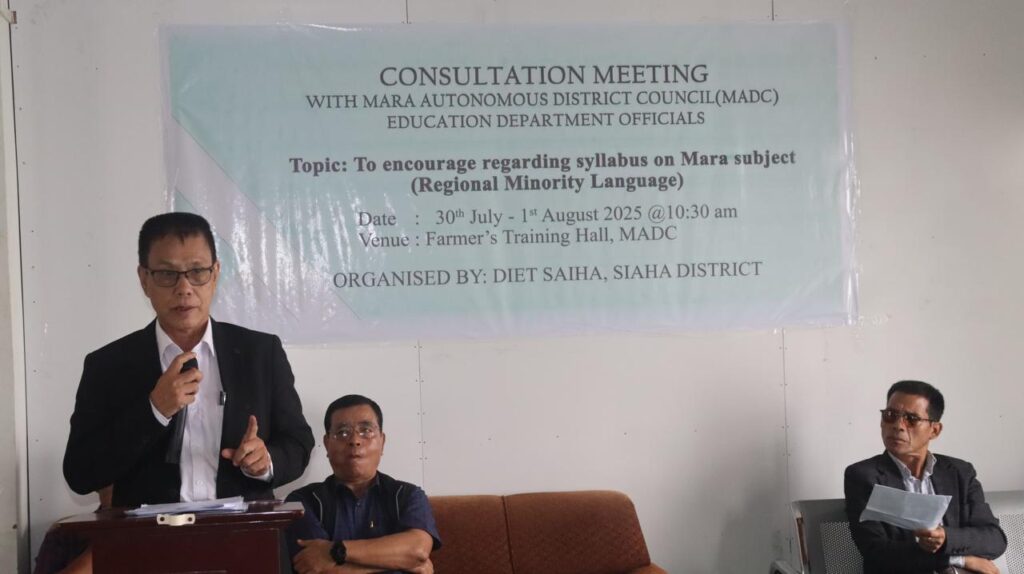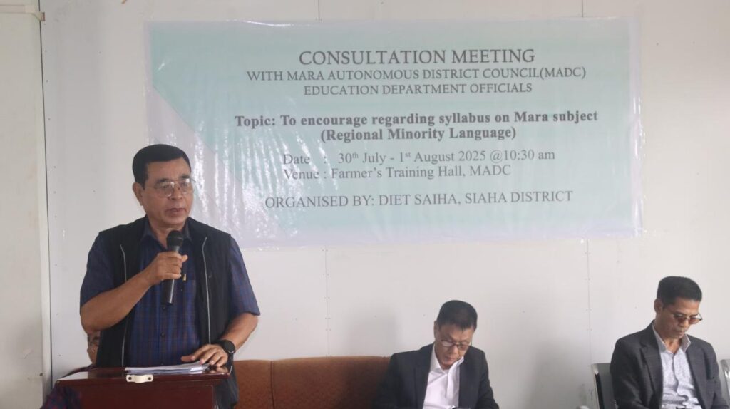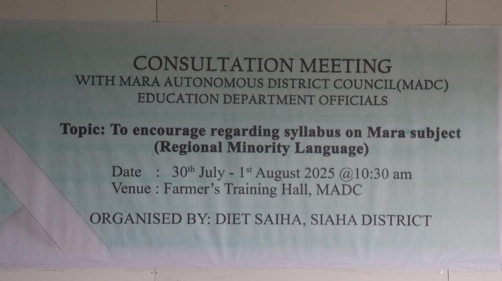 SIAHA, 30 Khihpa, 2025, Pakhynoh – Atanoh dawh 10:30 AM khata Farmers’ Training Hall, MADC Siaha liata DIET Siaha, Siaha District pachhuahpanohpa Consultation meeting with Mara Autonomous District Council (MADC) Education Department Officials regarding the advanced syllabus for the Mara subject (Regional Minority Language) programme ahmâhpa châ ta, Biepipa (Topic) châta “To encourage regarding syllabus on Mara subject (Regional Minority Language) hmâpa a châ.